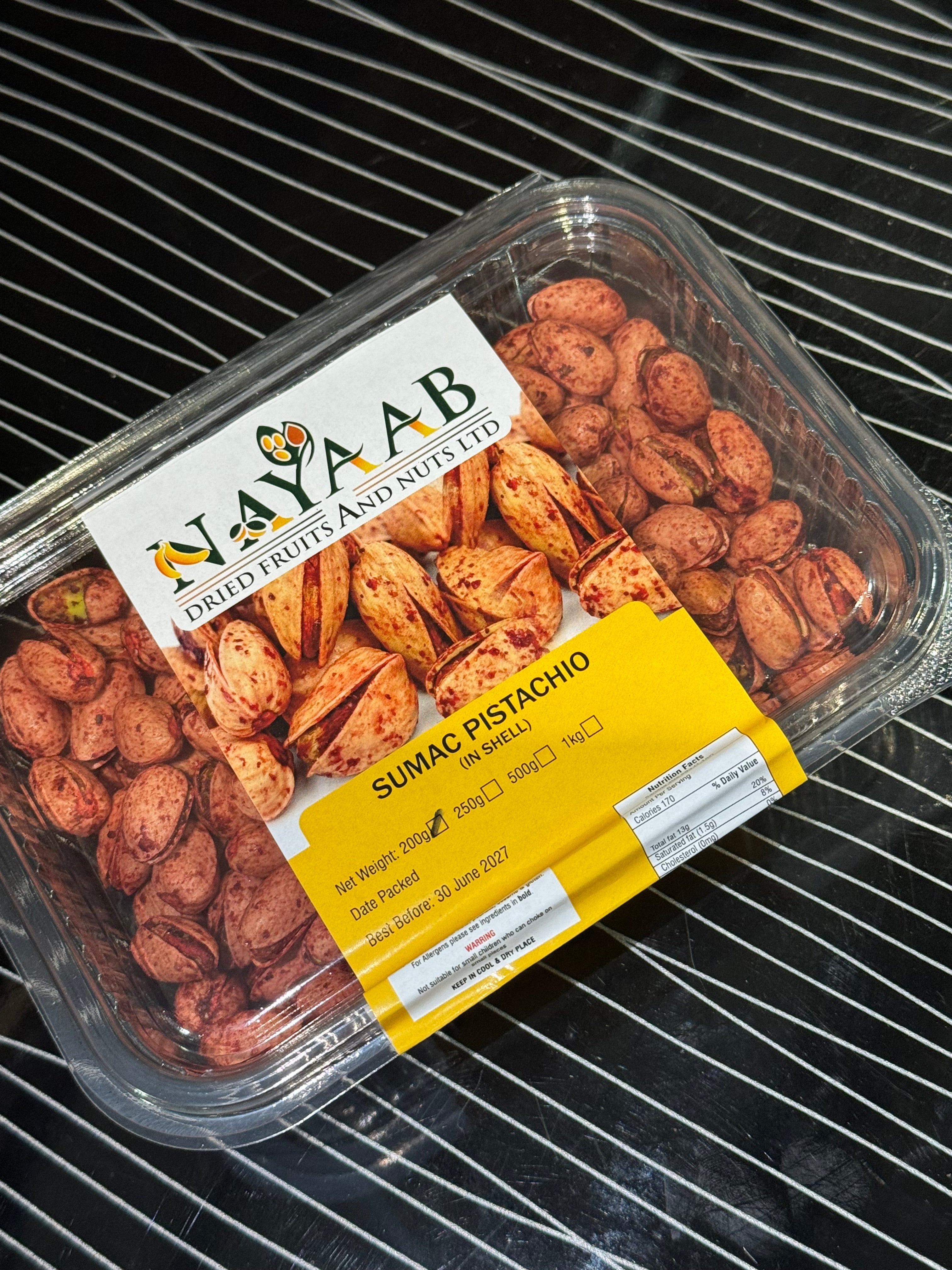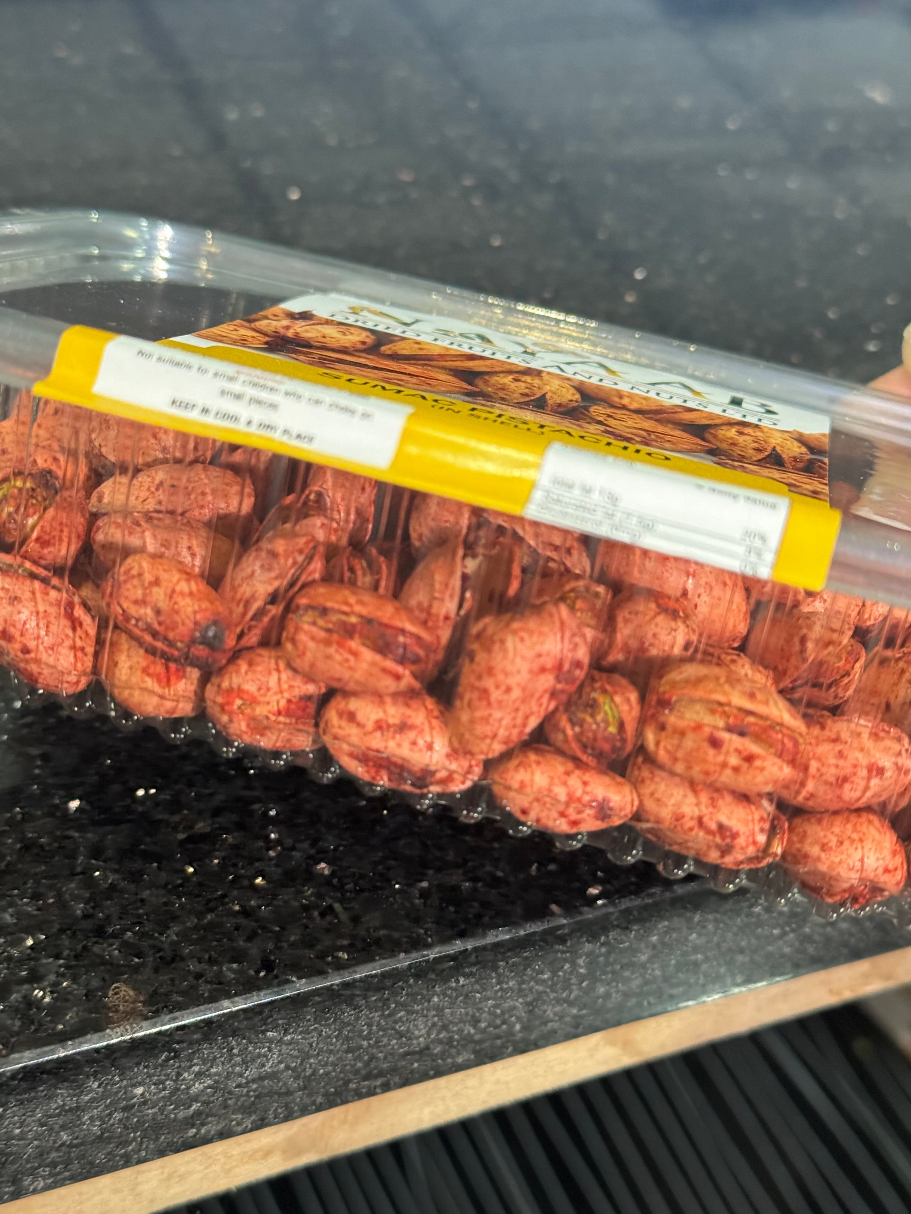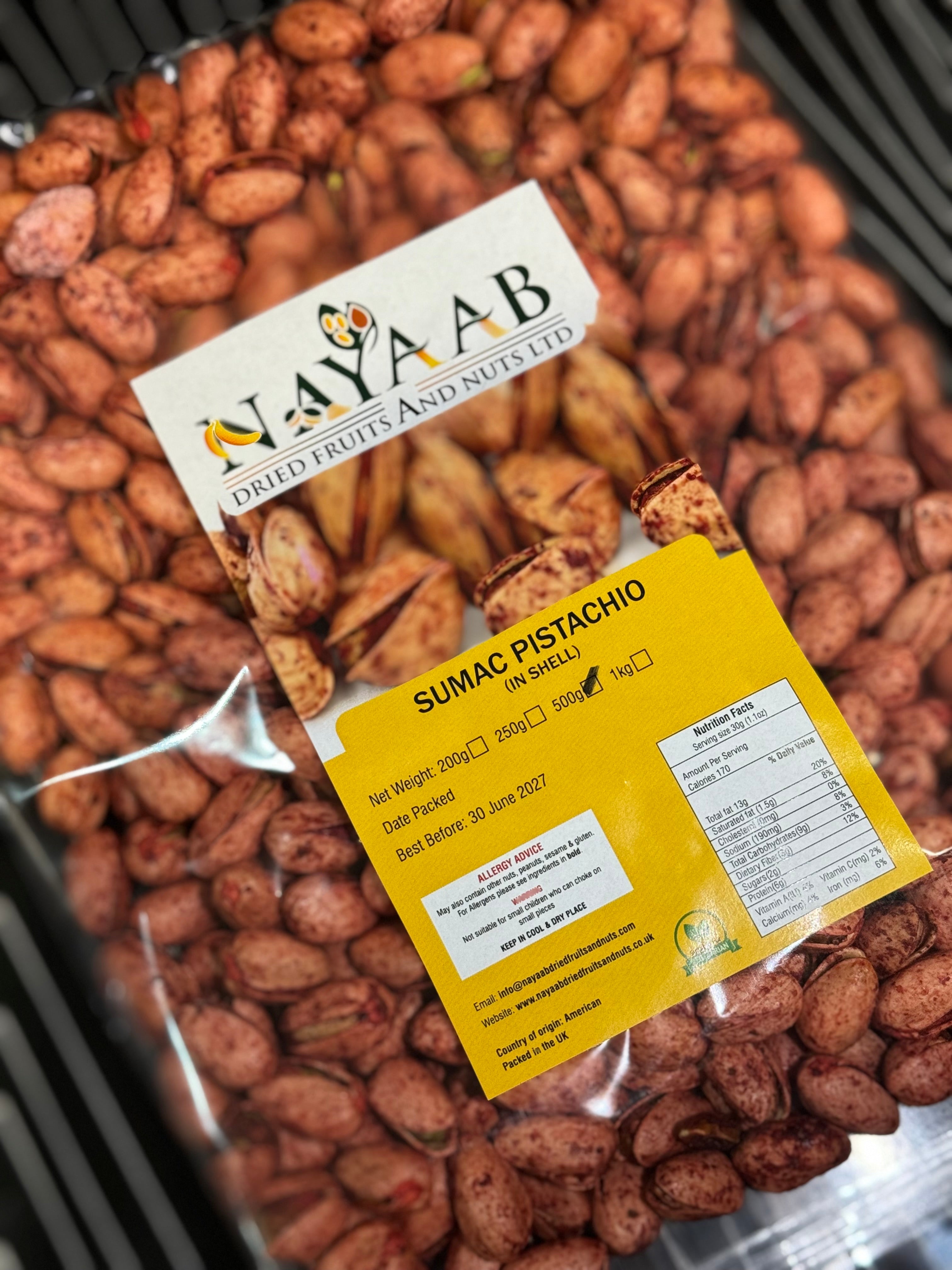 Experience a bold and vibrant twist on tradition with sumac pistachios – a flavourful fusion of premium California-grown pistachios and the zesty, citrus-like notes of sumac, a cherished spice in Middle Eastern cuisine. Lightly roasted and delicately coated in sumac seasoning, these pistachios offer a tangy brightness that perfectly complements their naturally rich, nutty taste.
